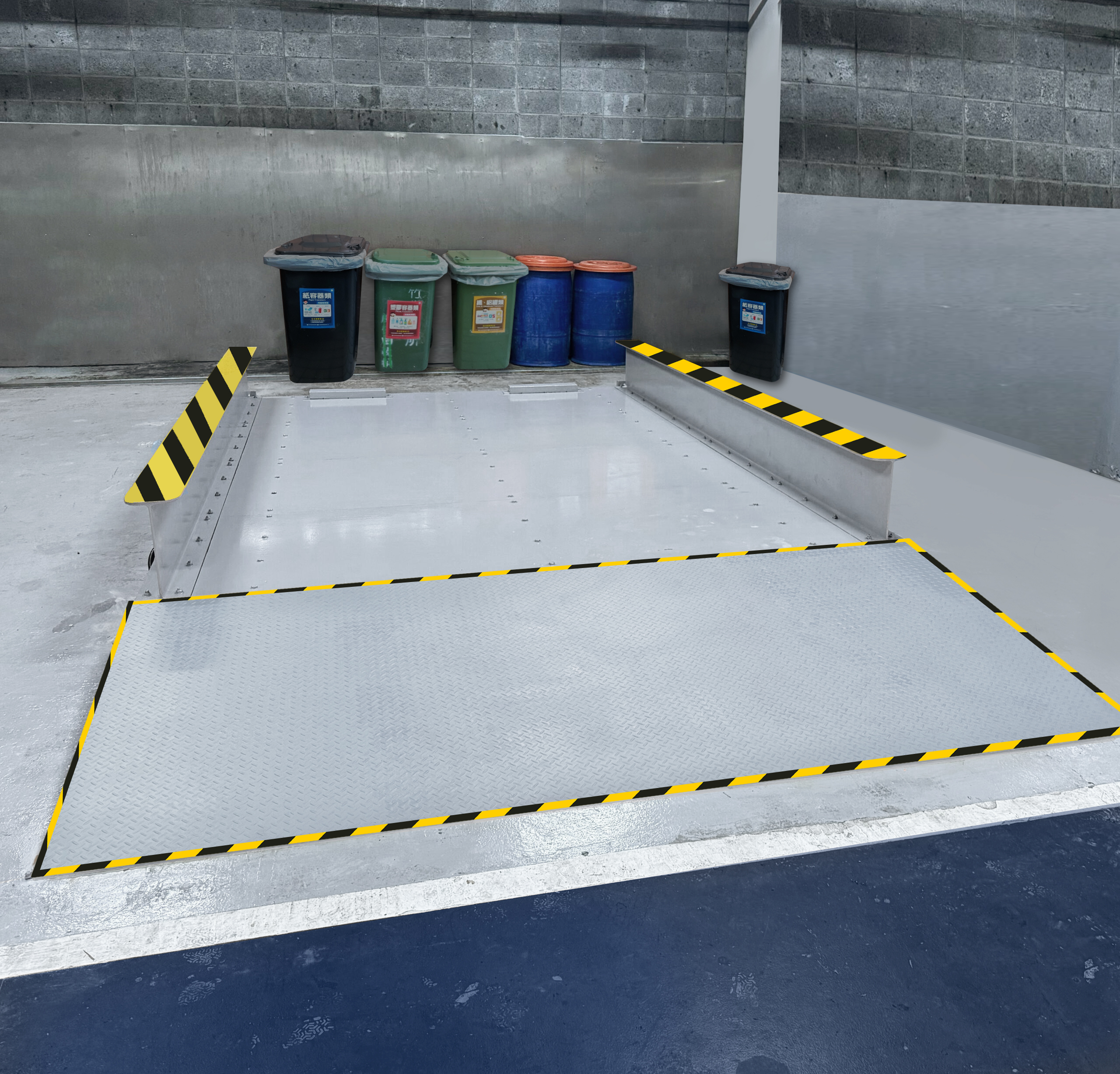 - 平台地磅由模組組成,配備不銹鋼接線盒與荷重元。