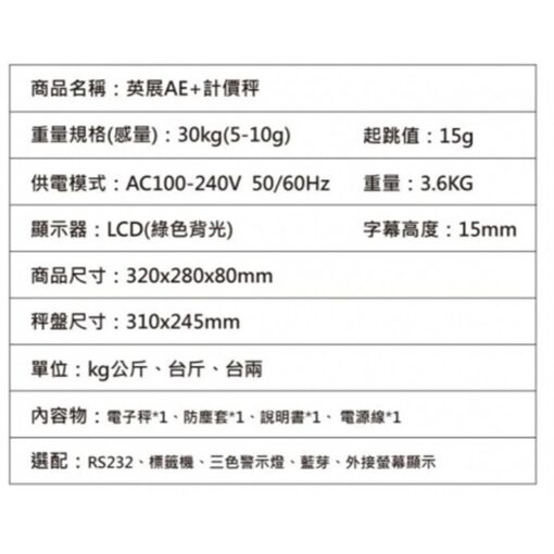 | 型號 | AE-30計價秤 |