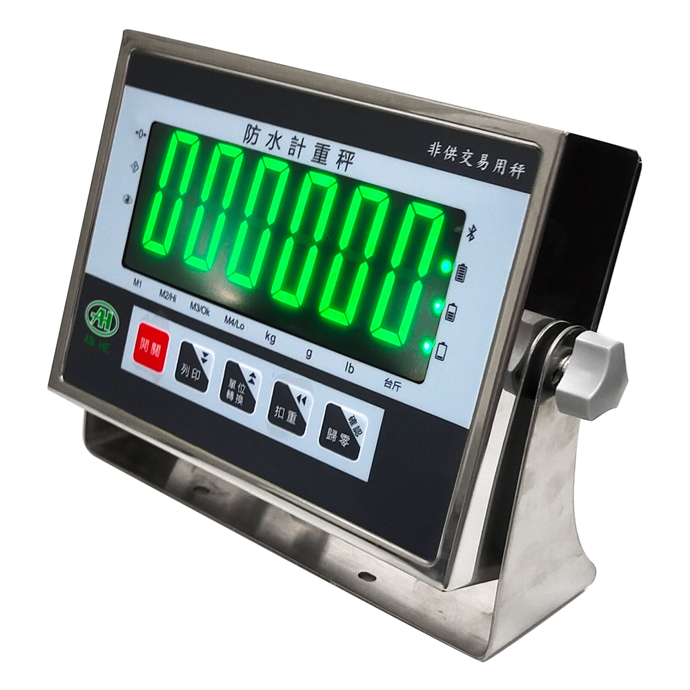 - 綠色LED液晶顯示器(長160mm.寬60mm字高48mm)重量顯示頭可調整上下角度。