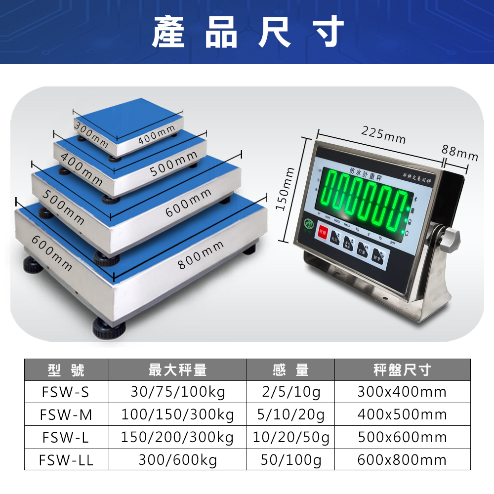| FSW-L | 150/200/300kg | 10/20/50g | 500x600mm |