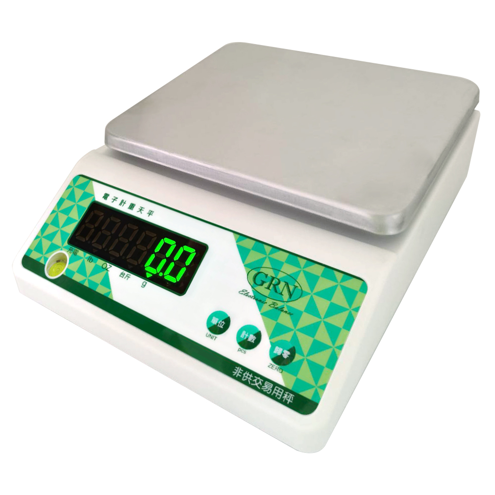 GRN電子計重天平是一款設計輕巧、功能強大的電子秤,適合食品、實驗室、工廠等各種包裝和秤重需求。