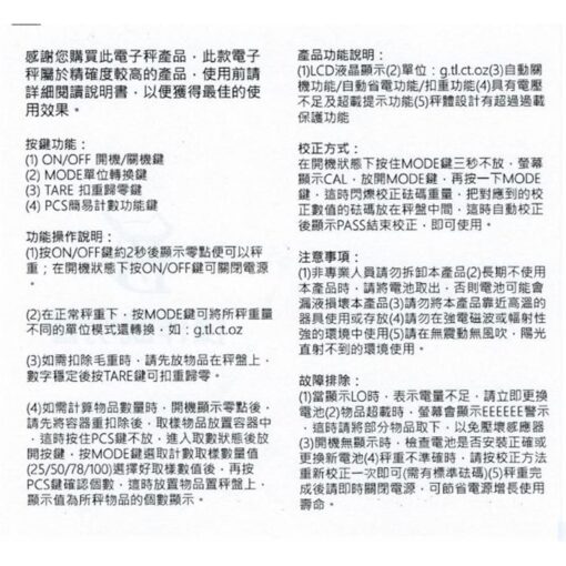 - 日常使用:可用於廚房烘焙時秤量食材,如調味粉、液體等。